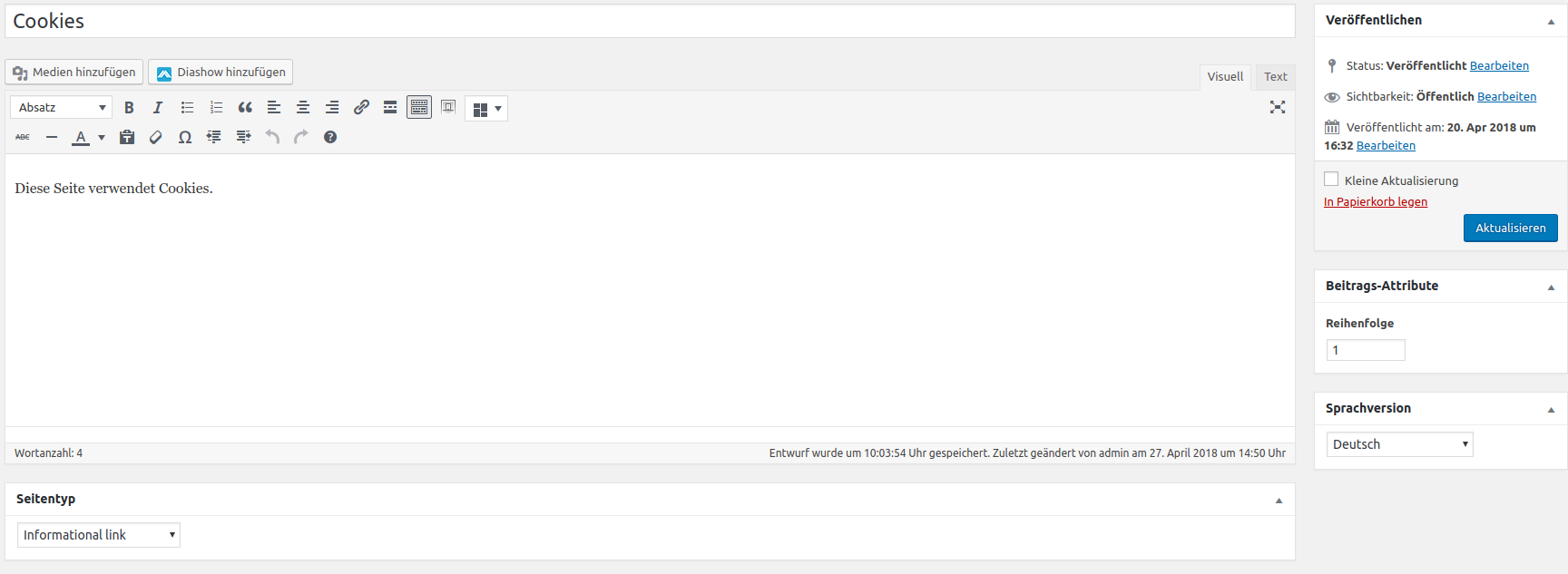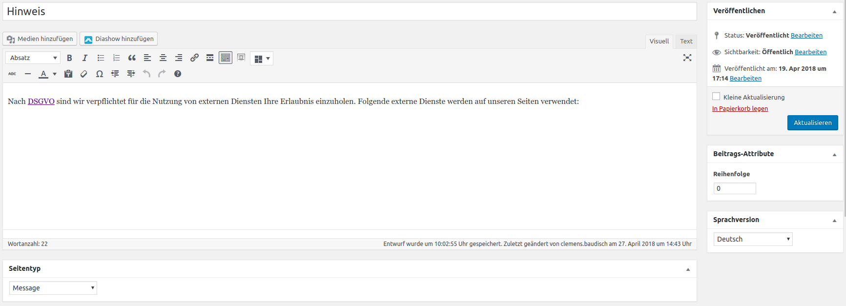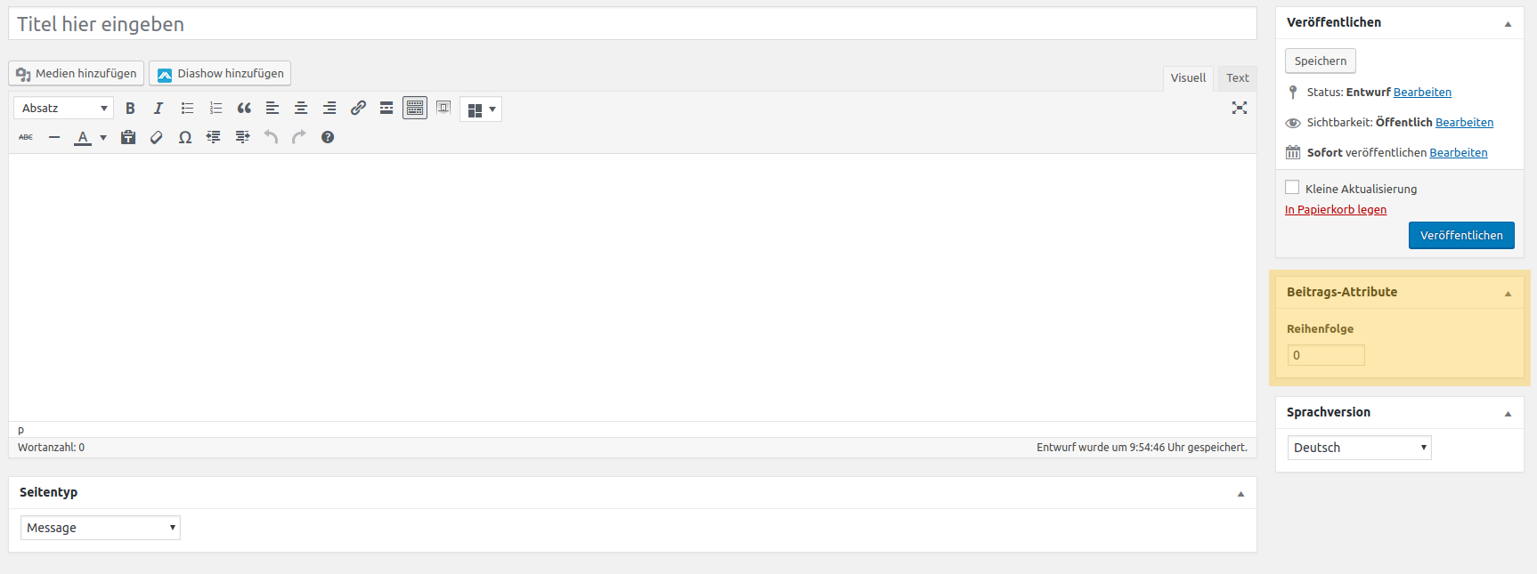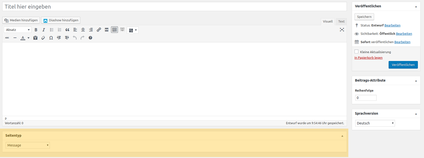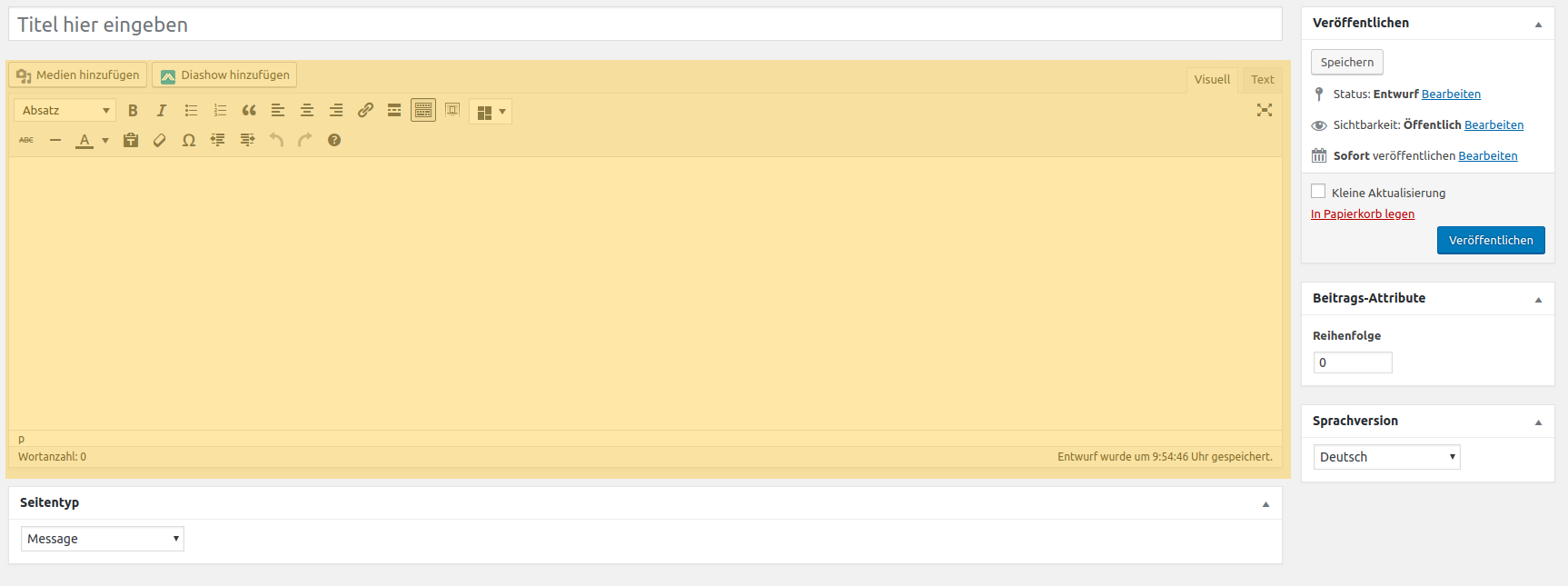 Direkt unter dem Titel, können Sie nun Ihren Text eingeben. Alles was hier drin steht, sieht auch der Nutzer Ihrer Seite.